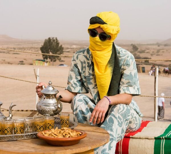 Once your adventure is complete, unwind in style at a luxury desert camp. Enjoy a delicious Moroccan lunch, featuring fresh local dishes served in a beautiful open-air setting. After lunch, cool off and relax with access to a refreshing swimming pool surrounded by desert scenery — perfect for sunbathing or simply soaking in the moment.
